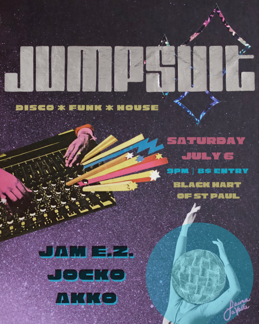 JUMPSUIT - JAM E.Z., JOCKO, AKKO Sat, Jul 6 2024, 9pm - Sun, Jul 7 2024, 1:30am Promoter JayCee Lives Venue Black Hart Genre(s) Disco Funk House
