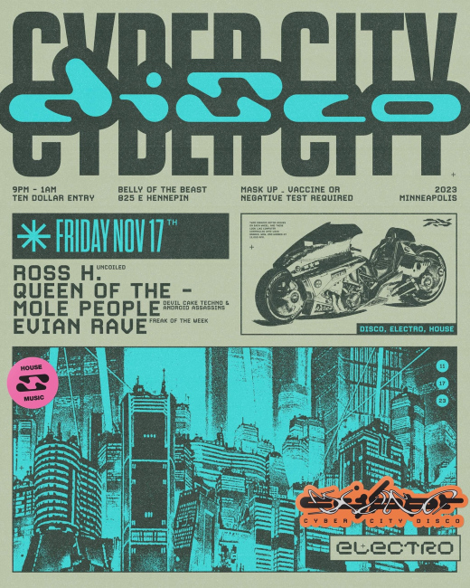 CYBER CITY DISCO - ROSS H, QOTMP, EVIAN RAVE Fri, Nov 17 2023, 9pm - Sat, Nov 18 2023, 1am Promoter JayCee Lives Venue BEAST Barbecue Genre(s) Techno Electro