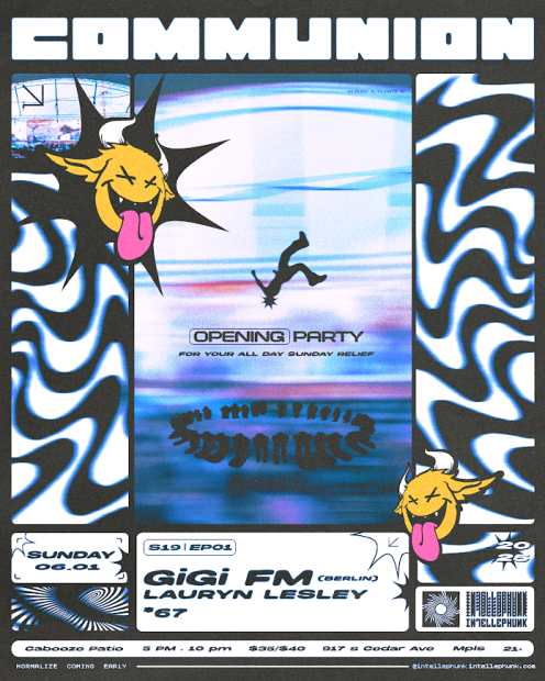 Communion Season 19 Opener Venue The Cabooze 913 Cedar Ave Minneapolis, MN 55404 United States TimeSun, Jun 1 2025, 5pm - Mon, Jun 2 2025, 10pm Promoter Intellephunk Price$40.00 Artists Gigi FM Lauryn Lesley *67 Genres Techno Age Limit 21+ Ticketsvenuepilot.com