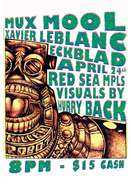 Mux Mool at Red Sea Venue The Red Sea Ethiopian Restaurant 320 Cedar Ave South Minneapolis, MN 55454 United States TimeThu, Apr 24 2025, 8pm - Fri, Apr 25 2025, 2am Promoter Xavier LeBlanc Price$15.00 Artists Mux Mool Xavier LeBlanc Eckblad Genres Glitch Hop Breaks Electro Age Limit 21+