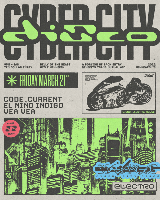 Disco After Dark 1 Year Anniversary Sat, Nov 15 2025, 9pm - Sun, Nov 16 2025, 2am Promoter Pivot Venue Eagle MPLS Genre(s) Disco House Electro