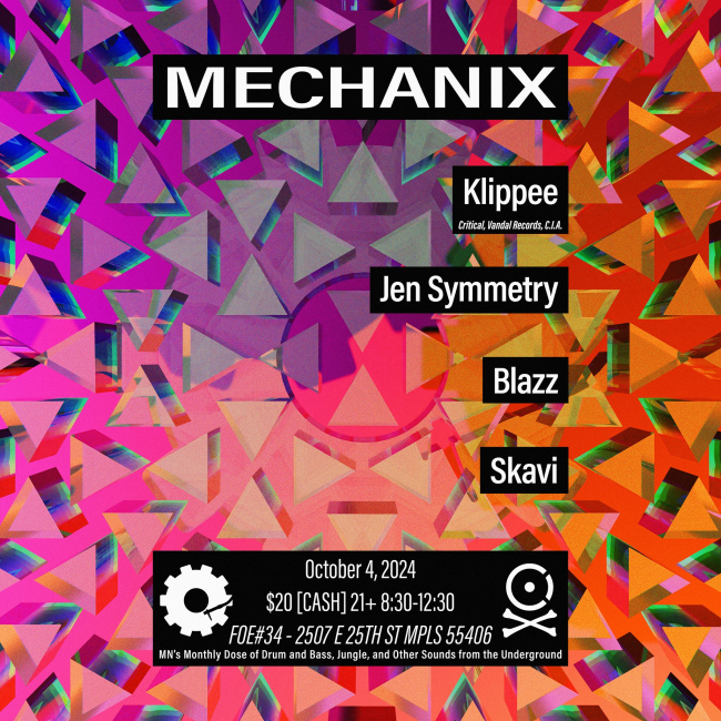 Mechanix - Ryan C's Birthday Extravaganza Fri, Jan 17 2025, 8:30pm - Sat, Jan 18 2025, 12:30am Promoter Mechanix Venue Fraternal Order of Eagles Genre(s) Breaks Drum & Bass Jungle